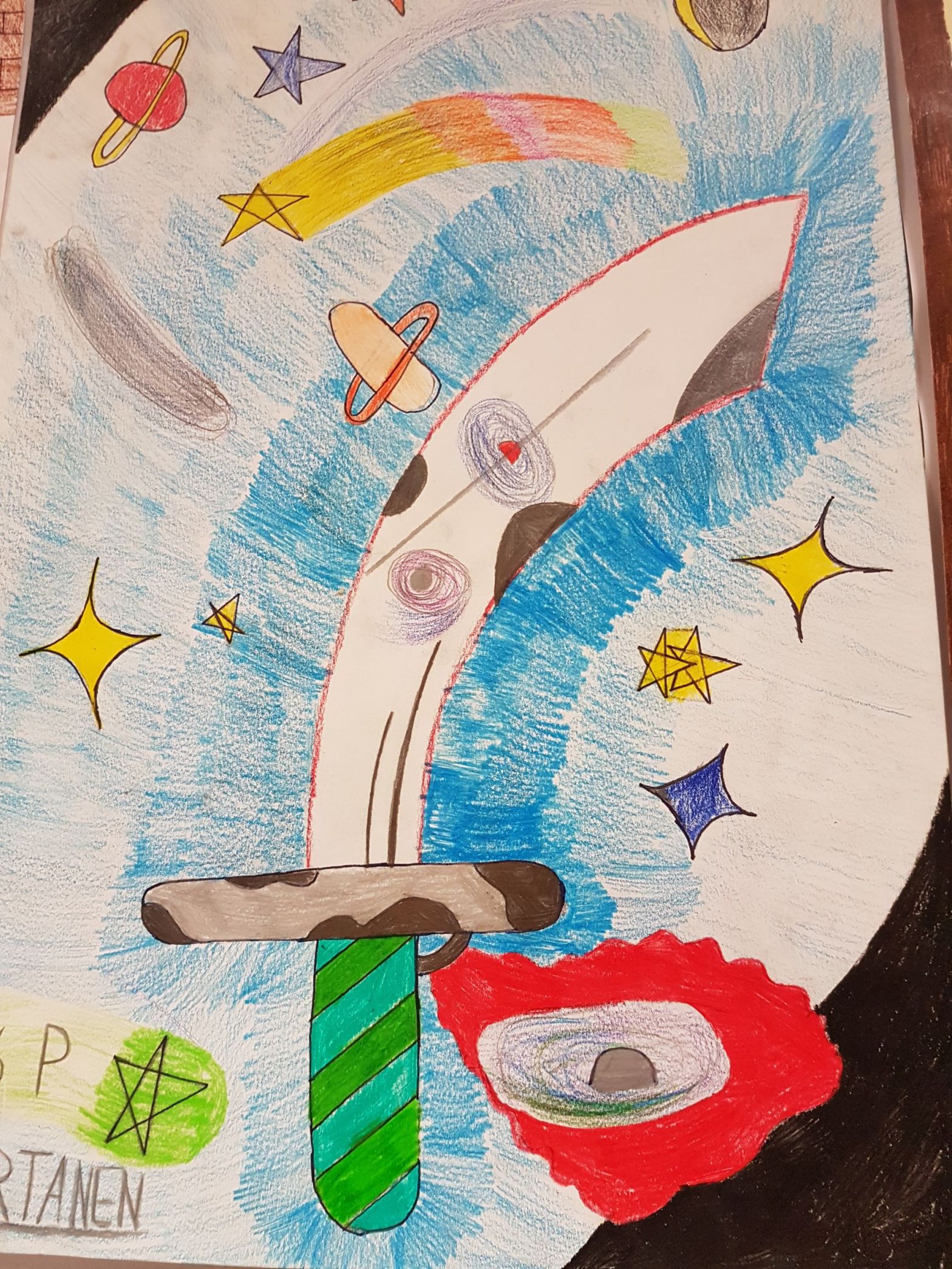 Entriamo tutti nella nuova aula. C’è qualcosa di diverso…uhmmm🤔. “È bella, sembra più spaziosa…” Ciascuno sceglie un posto. -Bambini, la classe è diventata una navicella spaziale-racconta la maestra- Ognuno di voi ha la sua postazione di comando. É molto importante averne cura. Io siederó al tavolino di navigazione. Tra poco, quando tutti ci saremo sistemati, vi spiegherò le istruzioni per iniziare il nostro viaggio.-