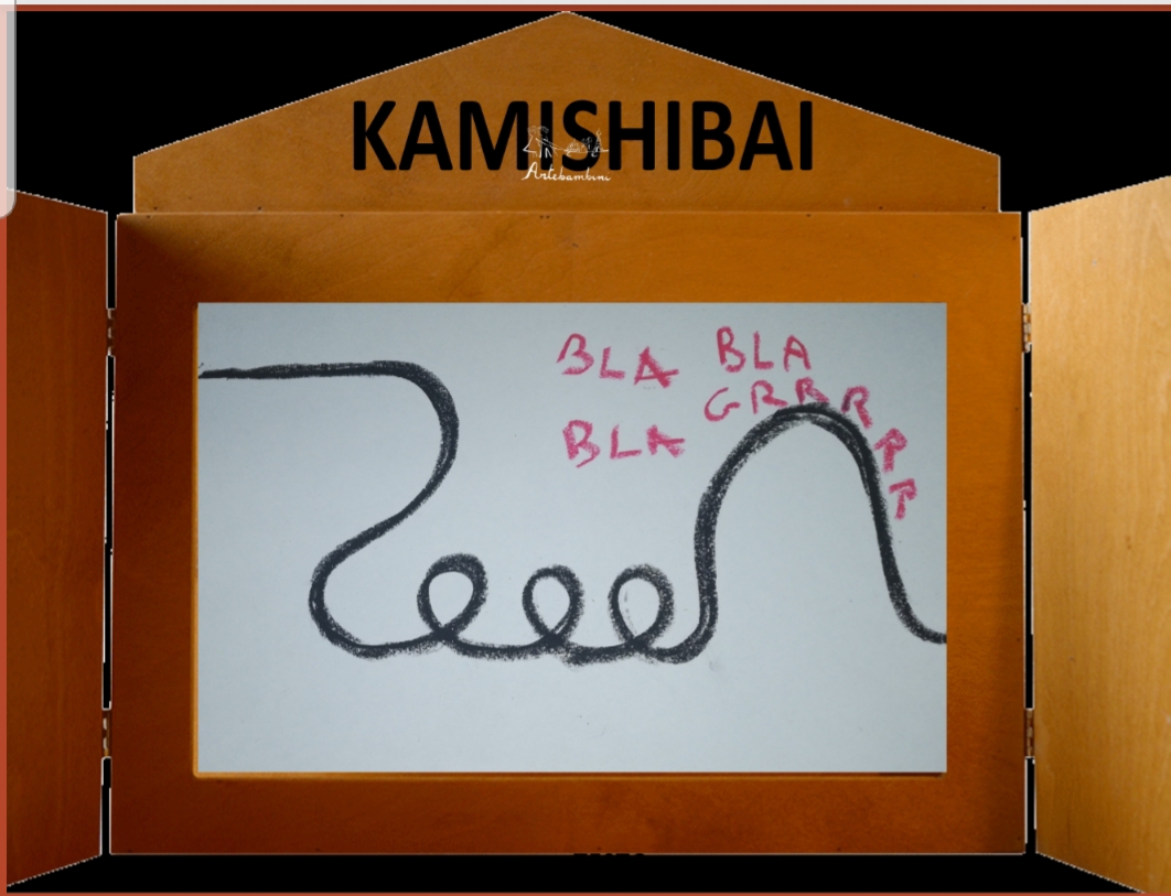 Tra i brusii e gli sguardi incuriositi, prendo un telo nero e lo stendo su un banco posizionato di fronte alla lavagna. Poi tiro su da terra una valigetta di legno (butai), appoggio nella parte superiore l’arcoscenico, anch’esso di legno, e inserisco nella tasca laterale le tavole della storia che andrò a narrare. Infine posiziono un faretto, un occhio di luce puntato sulla valigetta. Tutto questo avviene quando gli alunni sono in classe seduti al banco. La loro attenzione è rivolta a quei gesti preparatori, che annunciano ogni volta qualcosa che sta per cominciare, un inizio. Si crea così, nel tempo dell’attesa, una storia nella storia, che tra poco farà il suo ingresso. Il kamishibai, teatro itinerante nato in Giappone, è una sorta di albo “mobile” dove alle immagini fanno eco le parole (scritte dietro ogni tavola) e viceversa, in un dialogo in cui, ad ogni cambio di illustrazione, è come se si varcasse una soglia, come se si toccasse un ingranaggio che fa fare uno scatto in avanti. Il gesto della mano, che estrae la tavola e svela pezzetto per pezzetto quella successiva, “apre la porta alla meraviglia e allo stupore”. Il fatto interessante è che questo dialogare tra immagini e parole avviene in un mondo confinato tra due piccole ante di legno che, aprendosi come un sipario, catalizzano l’attenzione del pubblico su quello che accade dentro lo spazio delimitato dalla cornice. Il silenzio che regna in classe è il prologo alle voci del lettore o dei lettori, che a breve faranno risuonare nell’aula le parole di una storia semplice, ma intensa e di forte impatto. Narrare le storie con il Kamishibai è ridare significato ad uno spazio da preservare, da difendere. E’ riappropriarsi del tempo dell’attesa. In questo spazio temporale ognuno può crearsi un’idea, fantasticando su ciò che verrà. E’ il tempo della fantasia, della possibilità, della magia, del sogno, che però non ha niente di virtuale; al contrario si fonde con la realtà di questo strumento di narrazione, concreto legame tra chi parla e chi ascolta. Nasce così una complicità tra i partecipanti che, in qualche modo, difendono la ritualità della narrazione, scandita dagli spazi dell’attesa. La lettura di uno stesso testo è sempre diversa perchè realizza l’unicità del momento.