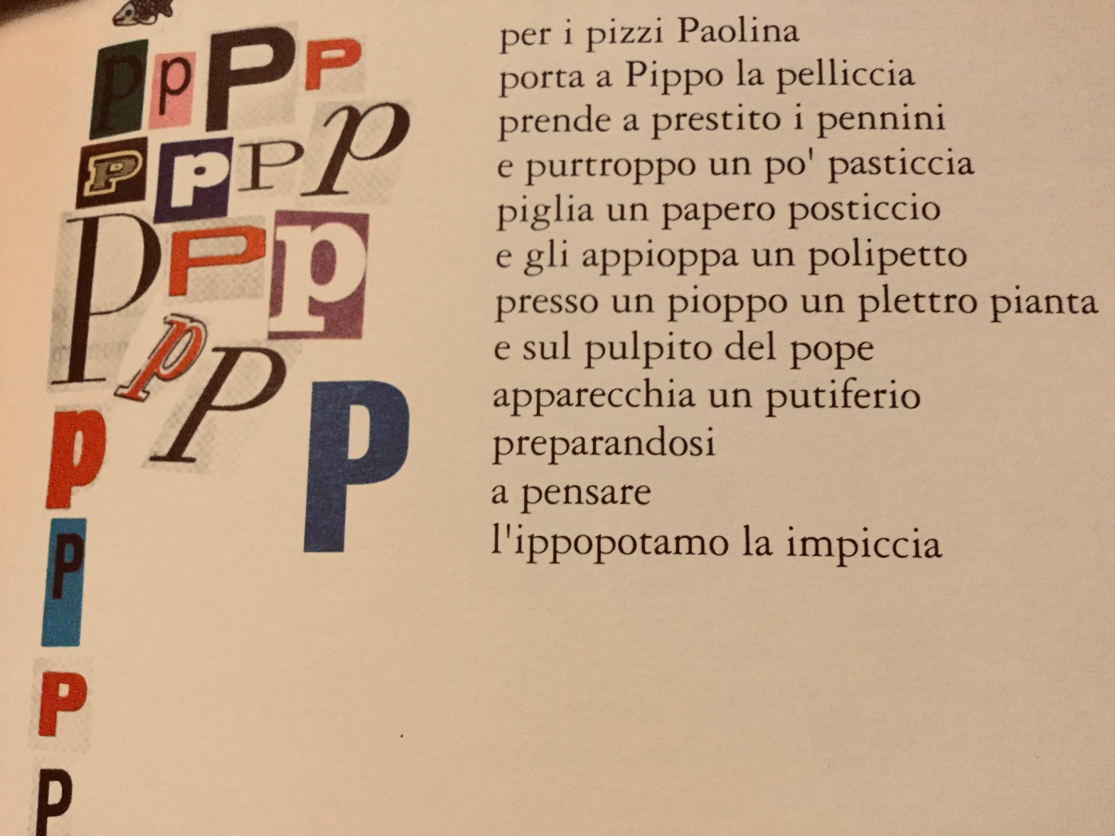 “Filastrocca dell’anaconda/ che si tuffa dentro l’onda/ che le piace far la pazza/ che nel fiume allegra sguazza/ e che è lunga per lo meno/ quanto è lungo un lungo treno.”